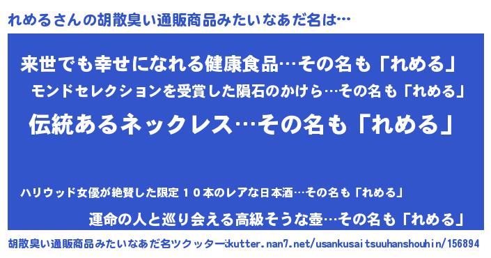| 意味不明あだ名 | 『とにかく怪しいれめる』 |