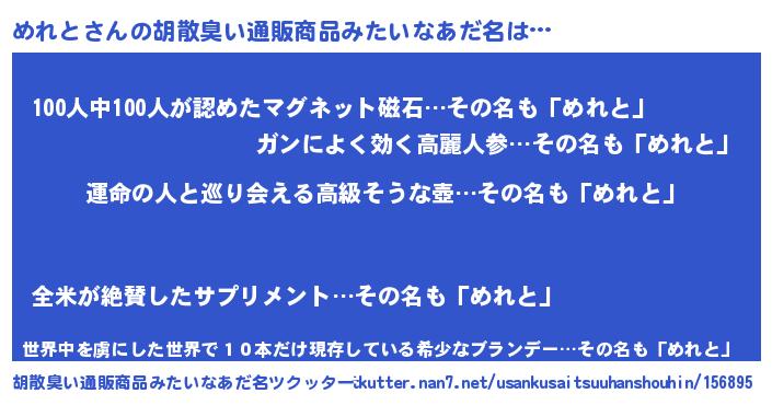 | 意味不明あだ名 | 『めれとフォーエバー』『自称めれと』 |