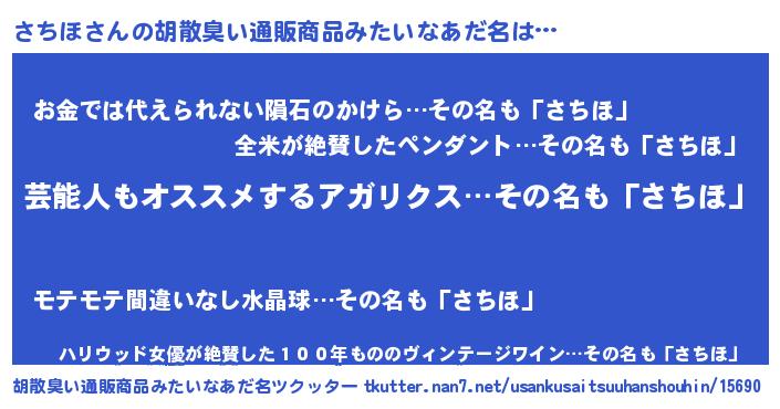 | 意味不明あだ名 | 『ヨモギ科さちほ属』『自称さちほ』 |