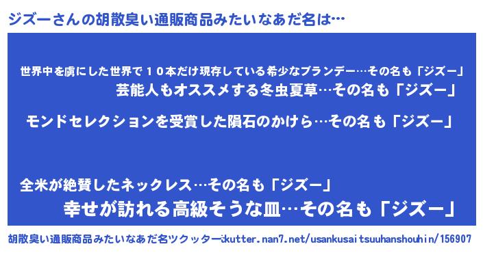 | ヘコむあだ名 | 『酢こんぶ』『ジズっぺ』『ジズにー』 |