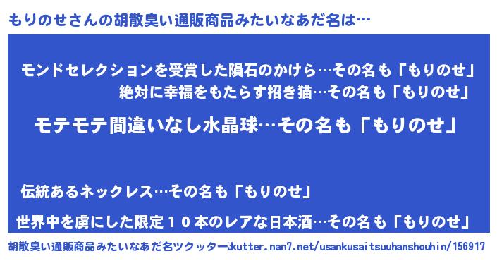 | ヘコむあだ名 | 『もりにゅー』『もりのせ(震え声)』 |