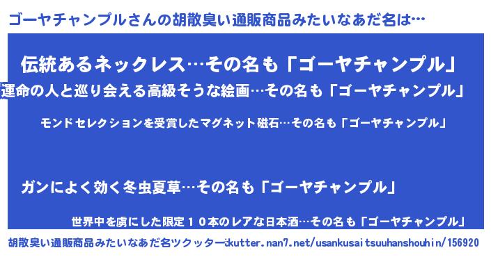 | 伝説のあだ名 | 『救世主となる技術者ゴーヤチャンプル』 |