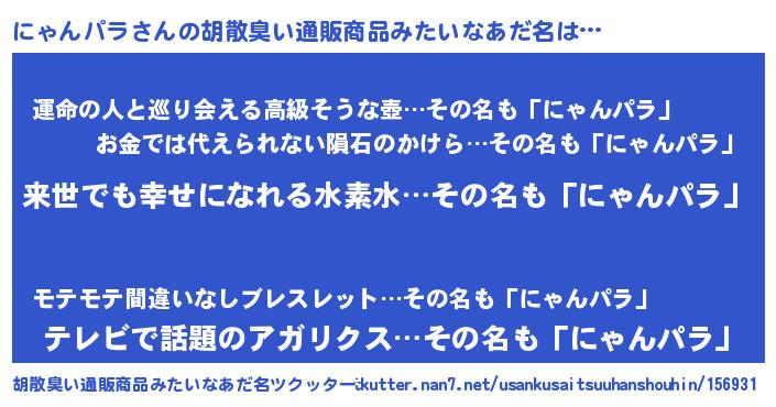 | 意味不明あだ名 | 『永久保存にゃんパラ』『自称にゃんパラ』 |