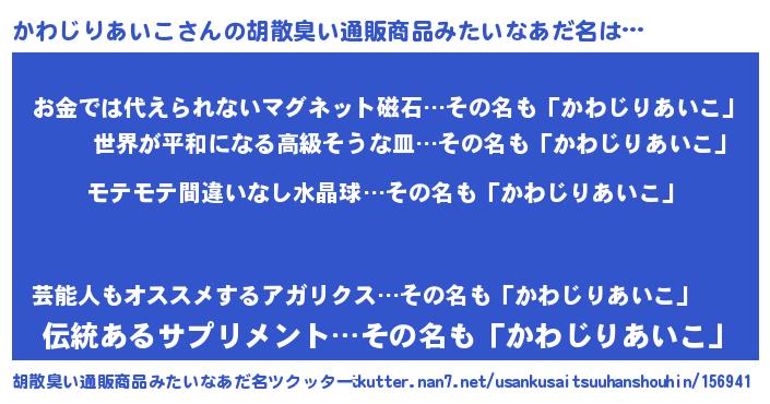 | 男性向けラノベタイトル風あだ名 | 『転生したらかわじりあいこだった件』 |