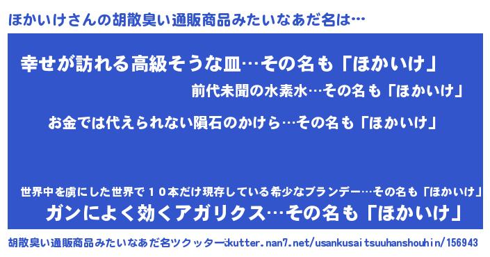 | ヒーロー風カッコイイあだ名 | 『慈愛の使者ほかいけ』『ネオホカイケ』 |