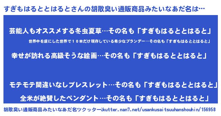 | ヒーロー風カッコイイあだ名 | 『ウルトラすぎもはるととはるとマン』 |