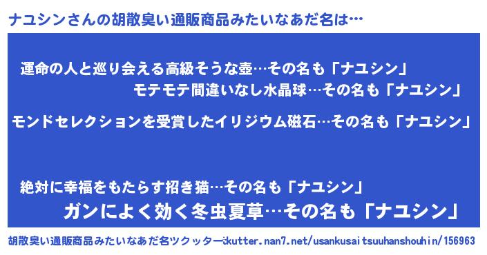 | 男性向けラノベタイトル風あだ名 | 『うちのナユシンが世界を掌握している!』 |