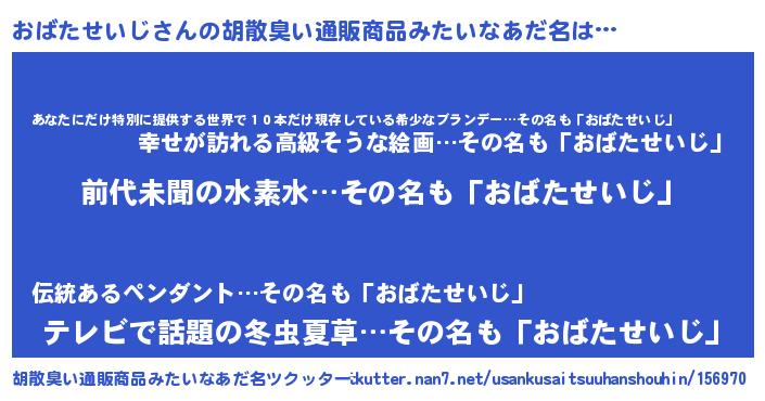 | 意味不明あだ名 | 『永久保存おばたせいじ』 |