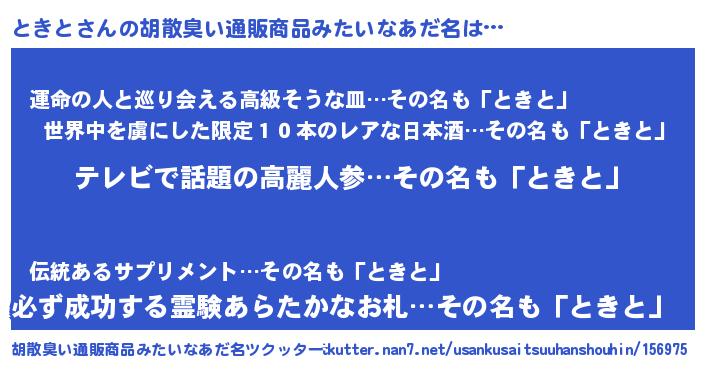 | 意味不明あだ名 | 『もやし科ときと属』『自称ときと』 |