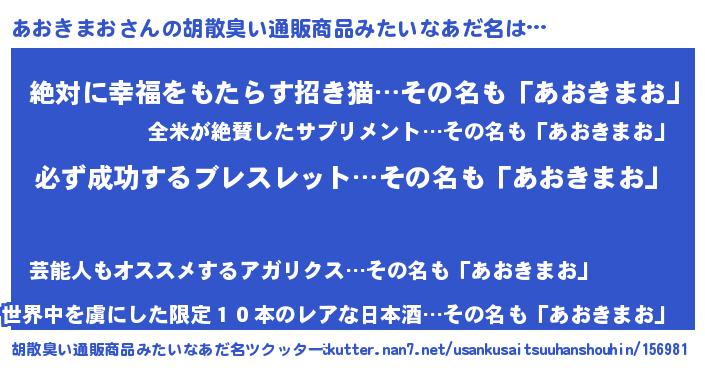 | 欧米人風あだ名 | 『アンジェラ・あおきまお』 |