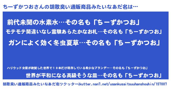 | 意味不明あだ名 | 『自称ちーずかつお』 |
