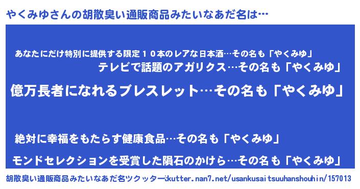 | ヘコむあだ名 | 『やくふぇ~』『やくみゆ(笑)』 |