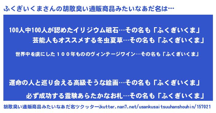 | ヒーロー風カッコイイあだ名 | 『仮面フクダー』『愛の使者ふくぎいくま』 |