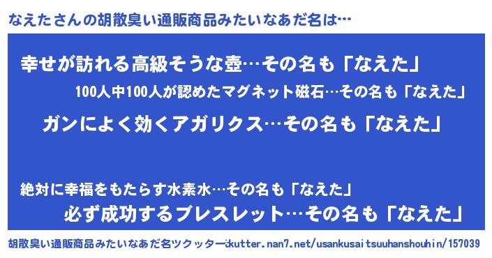 | ヘコむあだ名 | 『つくし』『なえっふぃ~』『なえを』 |
