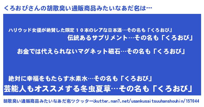 | 男性向けラノベタイトル風あだ名 | 『はたらくくろおびさま!』 |