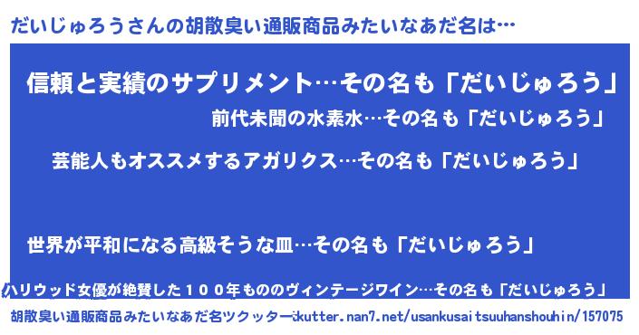 | 意味不明あだ名 | 『自称だいじゅろう』 |
