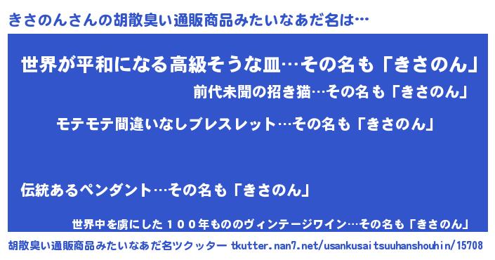 | ヘコむあだ名 | 『きさにー』『なまこ酢』『きさお』 |