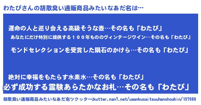 | ヒーロー風カッコイイあだ名 | 『天空の使者わたぴ』『スーパーワタピ』 |
