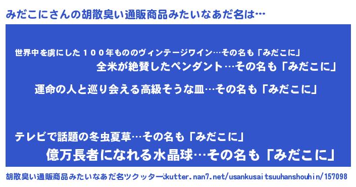 | 意味不明あだ名 | 『みだこにフォーエバー』 |