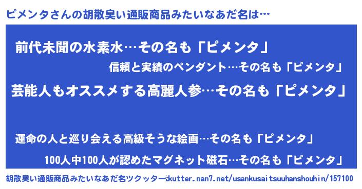 | ヘコむあだ名 | 『ピメンタ(笑)』『ピメっちょ』 |