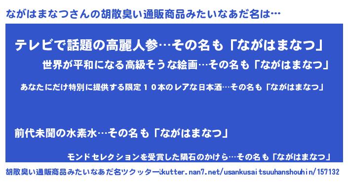 | 意味不明あだ名 | 『住所不定無職ながはまなつ(40歳)』 |