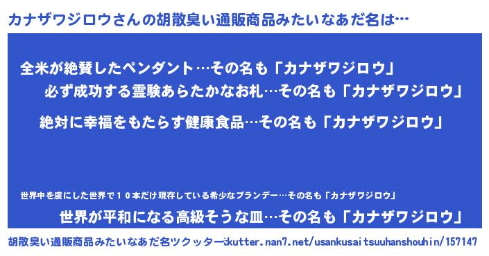 | 欧米人風あだ名 | 『カナザワジロウ・ステッグマイヤー』 |
