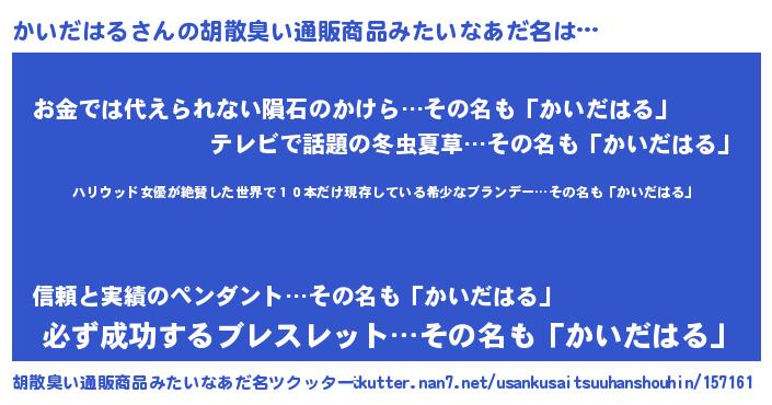 | 意味不明あだ名 | 『住所不定無職かいだはる(86歳)』 |