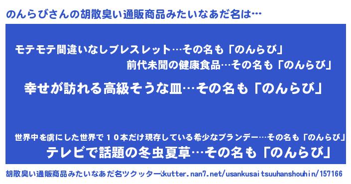 | 意味不明あだ名 | 『のんらびフォーエバー』『自称のんらび』 |