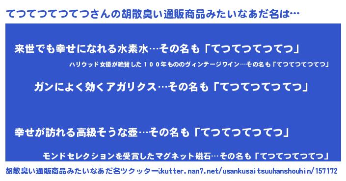 | 意味不明あだ名 | 『自称てつてつてつてつ』 |