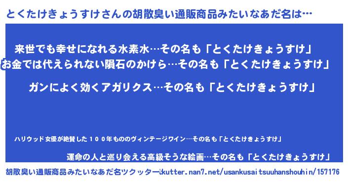 | 意味不明あだ名 | 『自称とくたけきょうすけ』 |