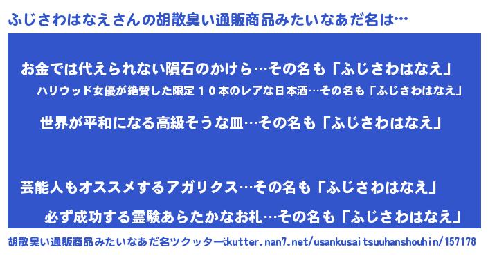 肩書あだ名 | 『ふじさわはなえ国家主席』 |