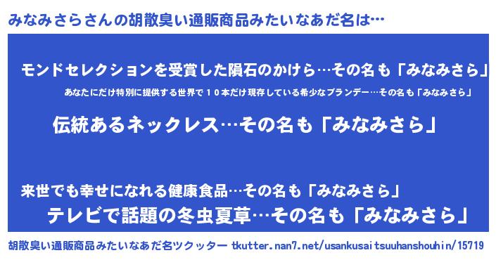 | ヘコむあだ名 | 『みなっぺ』『みなみさら(遠い目)』 |