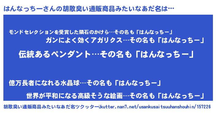 | 意味不明あだ名 | 『とにかく怪しいはんなっちー』 |