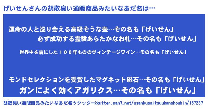 | 意味不明あだ名 | 『住所不定無職げいせん(11歳)』 |