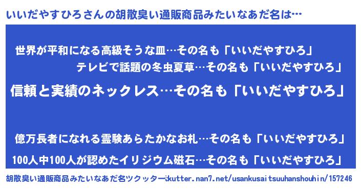 | 意味不明あだ名 | 『とにかく怪しいいいだやすひろ』 |
