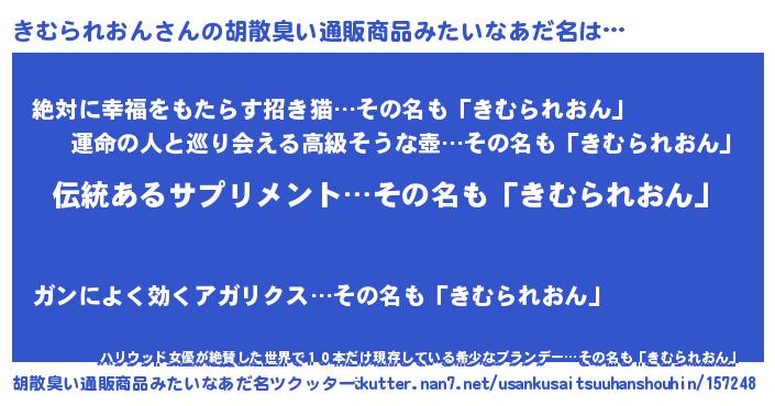 | 意味不明あだ名 | 『とにかく怪しいきむられおん』 |