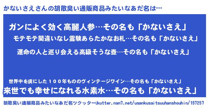| 意味不明あだ名 | 『かないさえフォーエバー』 |