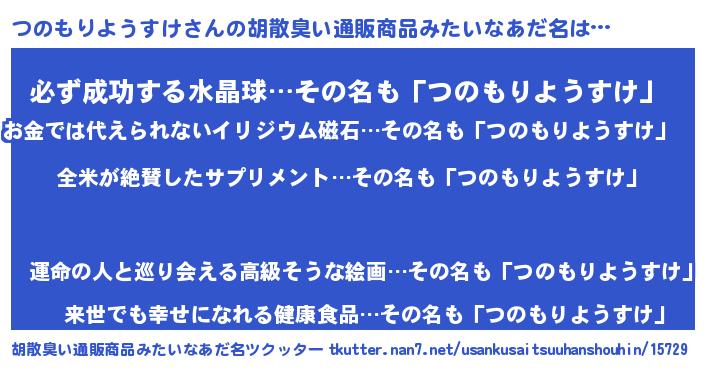 | 意味不明あだ名 | 『とにかく怪しいつのもりようすけ』 |