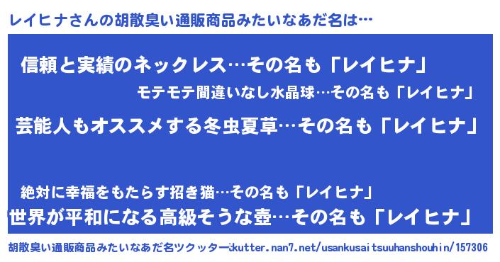 | ヘコむあだ名 | 『レイっちょ』『牛乳』『レイにゅー』 |