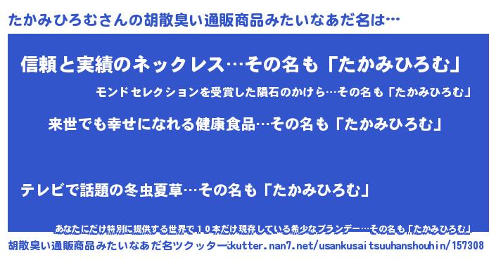 たかみひろむさんの胡散臭い通販商品みたいなあだ名をツクッター!