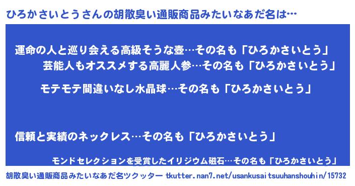 | 意味不明あだ名 | 『ペロリンひろかさいとう』 |
