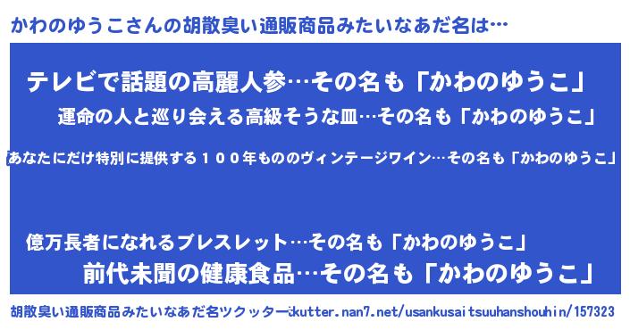 | 意味不明あだ名 | 『住所不定無職かわのゆうこ(12歳)』 |