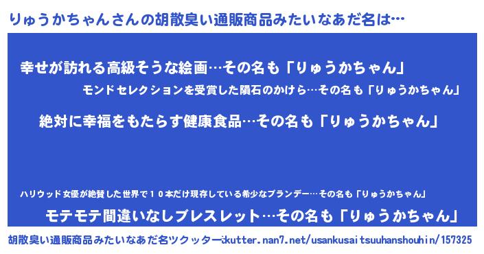 | 意味不明あだ名 | 『永久保存りゅうかちゃん』 |