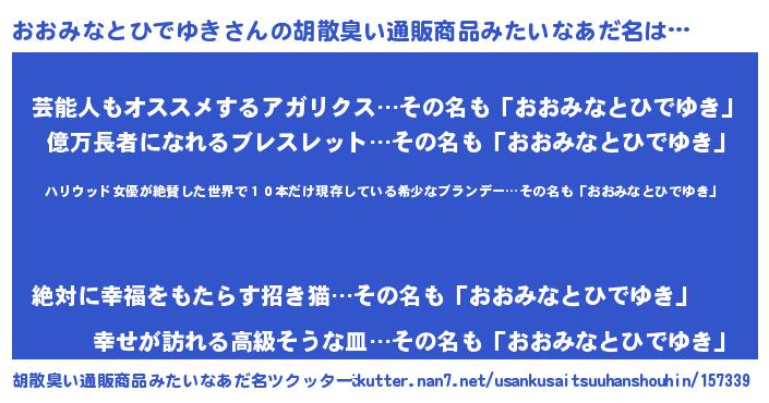 | 意味不明あだ名 | 『住所不定無職おおみなとひでゆき(91歳)』 |