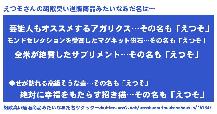 | ヘコむあだ名 | 『えつお』『えつそ(小並感)』『豆乳』 |