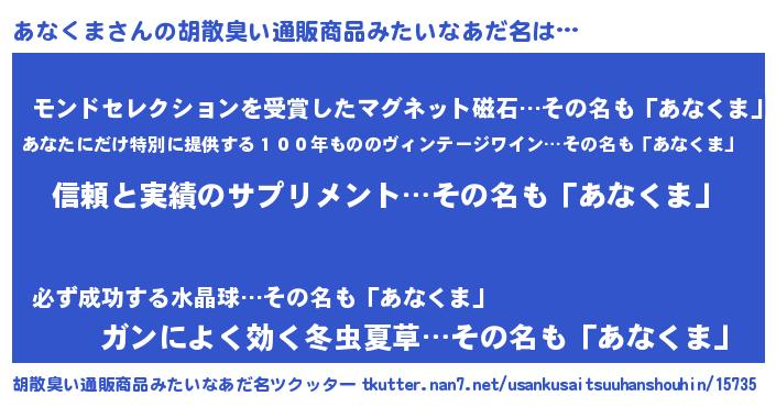 | 意味不明あだ名 | 『とにかく怪しいあなくま』 |