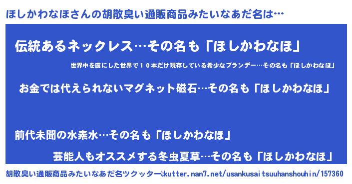 | ヘコむあだ名 | 『ほしお』『ほしかわなほ(笑)』 |