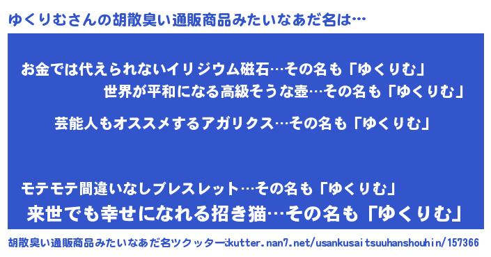 | 意味不明あだ名 | 『自称ゆくりむ』『永久保存ゆくりむ』 |