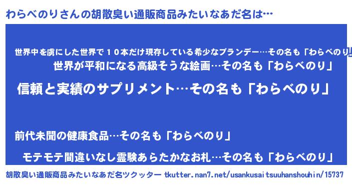 | ポケモン風あだ名 | 『ワラキング』『ヒワラベノリ』 |