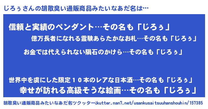 | ヘコむあだ名 | 『じろぷりん』『なまこ酢』 |